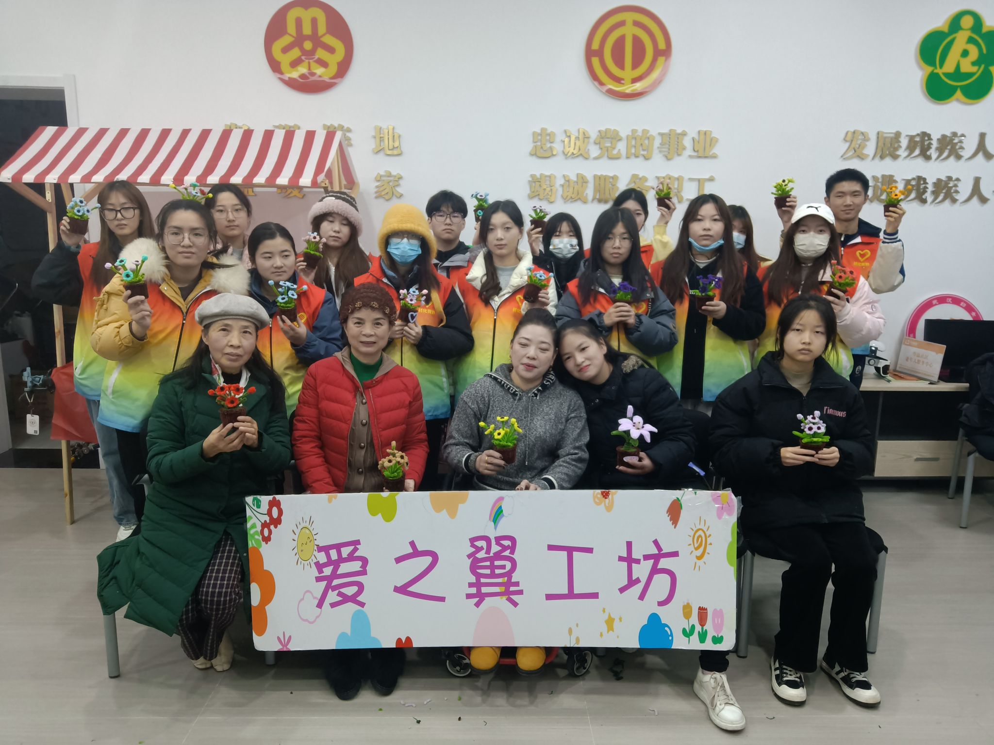 1月11日下午,在材化学院青凝志愿服务队组织与带领下,十六名来自不同学院的志愿者前往华锦社区,共同开展华锦社区“爱之翼”手工坊残疾人手工制作活动。