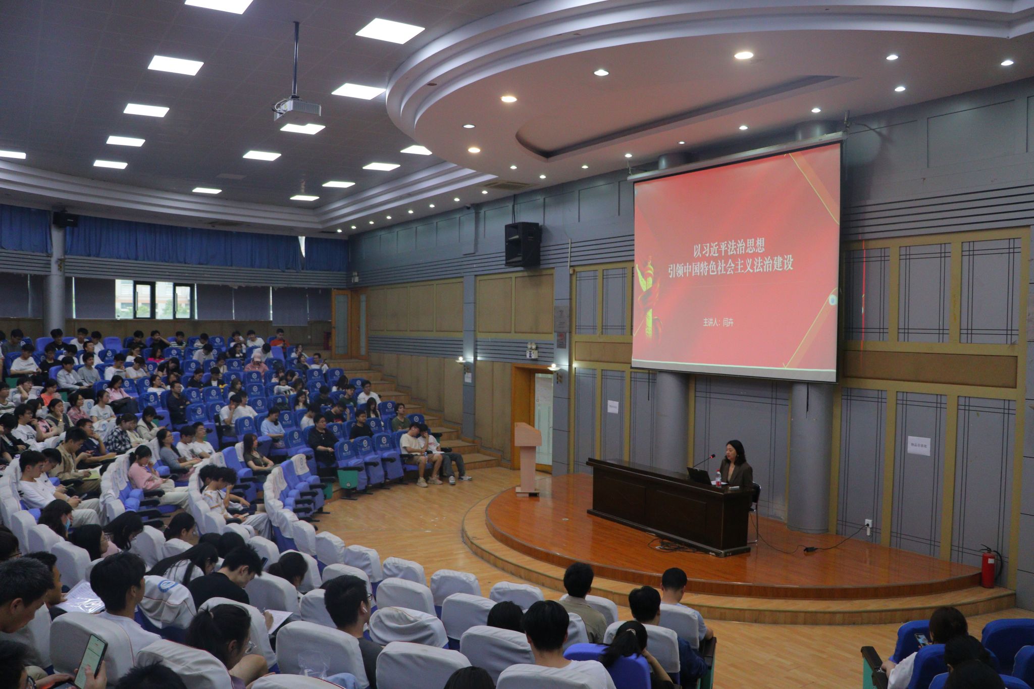 4月25日晚,马克思主义学院闫卉副教授以习近平法治思想为主题,从坚持以人民为中心、坚持党对全面依法治国的领导、坚持中国特色社会主义法治道路等方面,深入浅出地为全体学员阐述了习近平法治思想的深刻内涵。