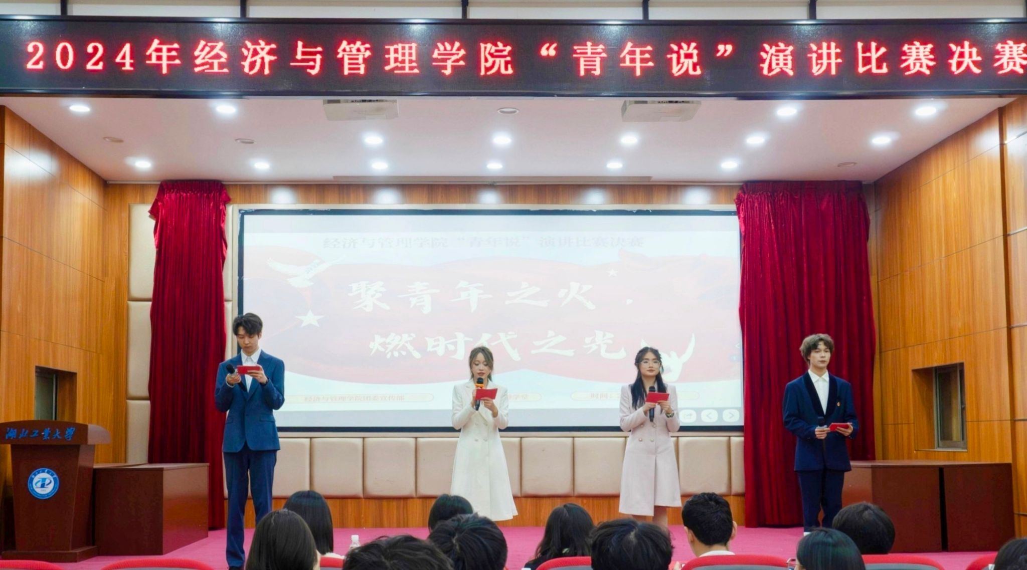 4月25日,“聚青年之火,燃时代之光”——经济与管理学院“青年说”演讲比赛在博学堂举行。学院党委副书记余贞、全体辅导员参加活动。